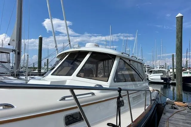 Daisy IV is Hull Number 9 of 12 Little Harbor 44 Whisper Jets built. She is nicely appointed with all engine service up to date including new electronics in 2023/24. Hinckley JetStick steering system new in 2023, transom door, teak cockpit sole and 25,000 BTU air conditioning system make her a unique and highly desirable yacht. She is powered with twin 420 hp yanmar diesels which provide cruising speeds of over 24 knots Unlike many boats of similar design, her bridge deck offers excellent visibility and comfortable seating for large parties in full air conditioned protection. She is priced to sell and offers are encouraged. Located in Portsmouth RI. Seller will consider trades.