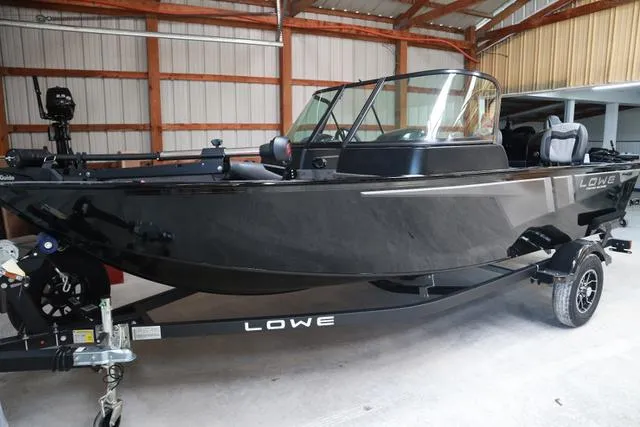 2024 Lowe FM 1675 WT, Price includes a Mercury 60ELPTEFI 4-stroke, Karavan painted trailer with Mag Wheels, ratchet tie downs and swing tongue, Motorguide 45lb trolling motor, Kicker KMC Stereo w/ 2 speakers, Driver seat with slider and two fishing seats, tilt steering, rear conversion bench seat, single bank battery charger, & Dual Bank Charger, swim platform ladder, vinyl cockpit floor and two Interstate Batteries. Color is Metallic Black. Price includes dealer prep and freight and all factory incentives.