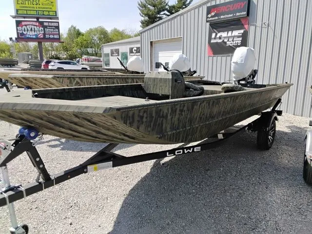 2026 LOWE RX1860SC IN MOSSY OAK BOTTOMLANDS CAMO. IT IS POWERED BY A MERCURY 60ELPT EFI FOUR STROKE ENGINE AND SITS ON A KARAVAN TRAILER WITH SWING TONGUE.
