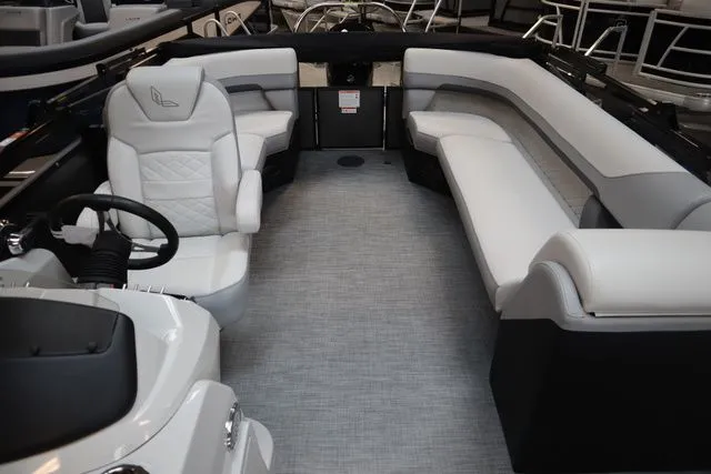 2026 Lowe SF 212 WT Triple Tube Pkg, Price includes a Mercury 150XL 4-stroke, Stainless Steel Prop, Tandem Axle Trailer with Brakes & Center Log Kit, Triple Tube Package (Three Toons, Lifting Strakes, Aluminum Underskin) Hydraulic Steering w/ Tilt Wheel, Black Power Bimini Top, Full Gray Deluxe Vinyl Floor, Premium Package (Kicker KMC 50 Stereo Upgrade, Custom Reclining Helm Seat w/ Slider, LED Docking Lights), GPS Speedometer, Two Front Fishing Seats, Vertical Rod Storage, 23 Gal Livewell, 4 Step Heavy Duty Ladder, Premium Ski Tow, Black Factory Cover and Interstate Battery. Price includes dealer prep and freight and all factory rebates. Color is Charcoal with Black Rails and Surf White Graphic with Gray Monochrome Furniture.