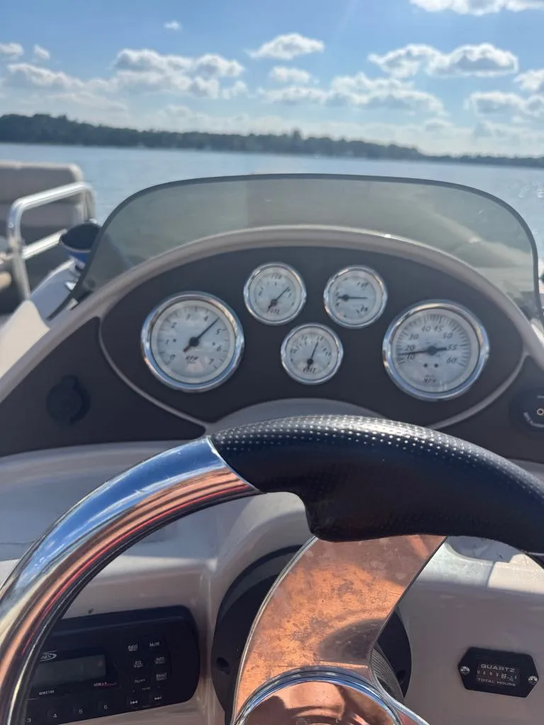 This boat has been carefully maintained by its original owner and stored indoors during winter, helping preserve its overall condition. The upholstery, seats, and covers remain nearly flawless, while the exterior shows only minor cosmetic scratches typical for its age. Equipped with a variety of comfort features, performance upgrades, and safety gear, this pontoon is a turn-key package ready for family enjoyment.