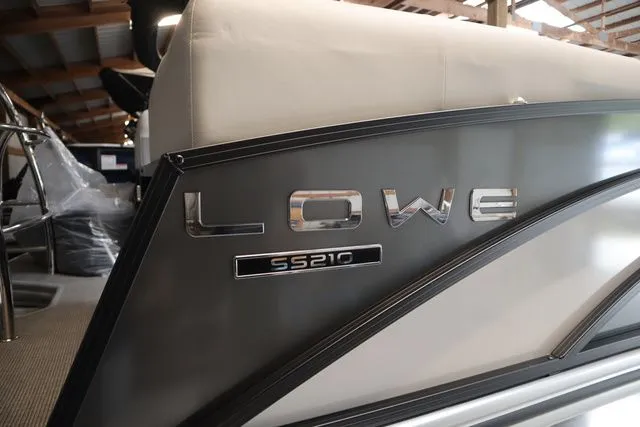 2026 Lowe SS 210 WT, Price includes a Mercury 115EXLPTEFI CT, Aluminum Prop, Tandem Axle Trailer with Brakes, Tilt Steering, Full Gray Deluxe Vinyl Floor, Mid Ship Dual Cup Holder, Premium Ski Tow, GPS speedometer, Standard Helm and Passenger Seats, Black Factory Cover & Power Bimini Top w/Boot, Heavy-Duty 4-Step Boarding Ladder, Storable Dinette Table, Kicker KMC45 stereo w/ 4 Speakers, (AM/FM digital tuner, Bluetooth compatible, WMA/MP3 USB playback w/Metadata), Dual Battery Switch w/ 1 Start Battery, Color is Charcoal Metallic Fence, Black Rails, Surf White Graphic, Gray/Monochrome Accent Furniture. Price includes dealer prep and freight.