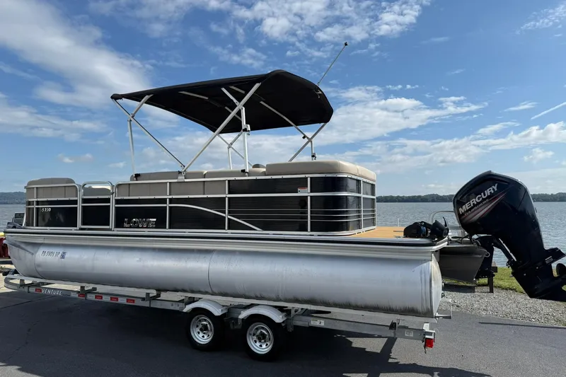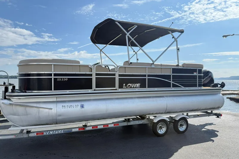 Just Arrived. 2015 Lowe SS230 Pontoon. This boat is powered by a Mercury 90 Command Thrust Outboard with 146 hours on it. Just had all engine service completed. It has a bimini top, Trac fisherman 25 windlass anchor, lowrance fish finder, changing station, vinyl flooring, and full cover. also comes with a dual axle trailer with new tires and bearings. give us a call to discuss this boat!