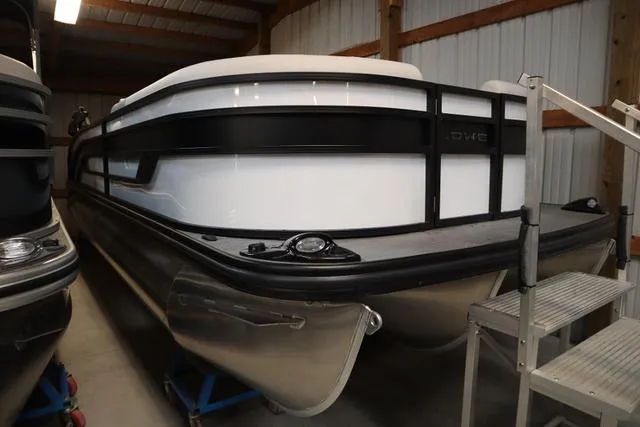 2024 Lowe SS 230 DL Triple Tube Package, Price includes a Mercury 200hp 4-stroke, Stainless Steel Prop, Tandem Axle Trailer with Brakes & Center Log Kit, Triple Tube Package (three toons, lifting strakes, aluminum under skin,) hydraulic steering, Upgraded Power Bimini top, Kicker KMC 50 stereo upgrade, Full Gray Deluxe Vinyl Floor, custom reclining helm and passenger seat, Blackout Option (black ladder, black rails, black Lowe logo, black extrusion, black dock light shrouds and black cleats,) Black factory cover, RGB Interior and Underdeck Lighting. GPS speedometer, ladder, and Ski tow. Color is Metallic White fence with Black rails and bimini top frame, Black Matte custom graphics, with Gray/ Monochrome furniture. Price includes dealer prep and freight.