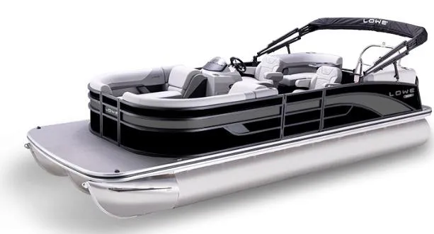 2025 Lowe SS 230 WV Special Triple Tube Package, Price Includes a Mercury 150hp Pro XS 4-stroke, Stainless Steel Prop, Tandem-Axle Trailer with Brakes and Center Log Kit, Triple Tube Package (Three Toons, Lifting Strakes, Aluminum Underskin), Hydraulic Steering, Kicker Standard Stereo. Deluxe Gray Floor, Helm & Passenger seats w/ folding armrests, Storable Table with Cupholders, Black Factory Cover & Heavy-Duty 9' Bimini Top w/Boot & Quick Disconnects, and Ski Tow. Price Includes Dealer Prep and Freight. Color is Black Metallic Fence with Black Rails and Bimini Top Frame, Charcoal Graphics, with Gray Monochrome Furniture.