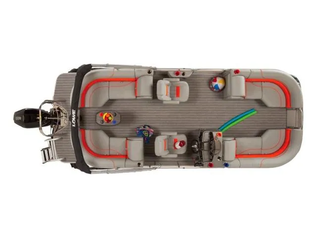 2021 Lowe SS230WT with Black fence, Black rails and Neon Orange graphics, gray interior and gray deluxe vinyl flooring. This is powered by a Mercury L200 EFI four stroke engine and is sitting on a Karavan trailer with brakes. Features include Marine Audio stereo system, Panther power steering, Custom reclining helm seat with slider, midship cupholder, Black 9' Bimini top, black mooring cover, TLX package (crossmembers on 16" centers and 50-gallon fuel tank), Led interior lighting, Premium ski tow,