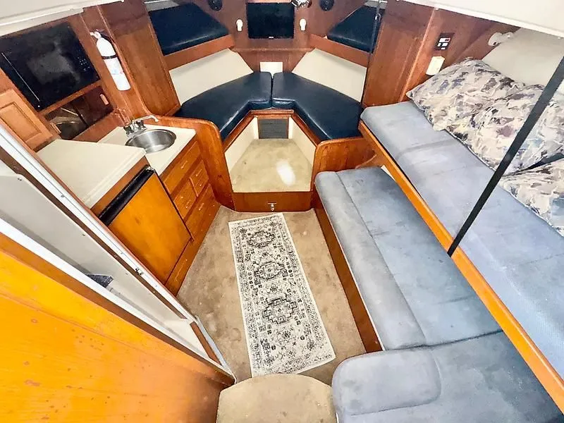 Comfortable Interior: Features a well-appointed cabin with sleeping accommodations, a galley, and a head, allowing for comfortable overnight stays.
