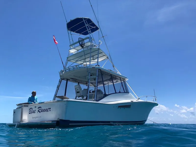 The Luhrs 38 Open features a wide beam, Carolina flare, and a sharp entry to deliver a smooth, dry ride. The low center of gravity increases stability in a seaway as well as when trolling. A large center console holds all the latest in electronics and instruments while keeping the captain in the center of the action. Visibility is enhanced by the raised custom helm seat and the standard full enclosure. An optional windshield is also available. Rigging baits or working tackle is easy with the integral bait stations which include drawers, washdowns and a sink. An insulated livewell with high-capacity pump will keep the bait alive and ready to go. The standard equipment includes a full tuna tower complete with controls, instruments, seating and even a sunshade plus air conditioning and generator. After a long day of trolling and running, you'll appreciate the accommodations below. A wide, double berth with a real inner-spring mattress awaits you as does the fully-lined head with a luxurious separate stall shower. The settee/dinette will seat you for dinner and convert at night into a double on the lower and a single on the upper to allow for the flexibility you need for family, friends and crew. Any chef will appreciate the Corian-covered galley which includes range, microwave, refrigerator/freezer and plenty of storage.