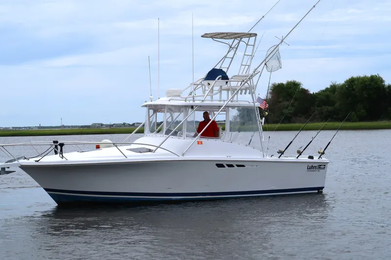 The 1997 Luhrs Tournament 290 is a proven offshore sportfisher with a wide beam for stability and a spacious cockpit built for serious anglers. Powered by twin inboards, she offers solid performance for both fishing trips and weekend cruising. Below, you'll find a comfortable cabin with sleeping space, galley, and head for overnight stays.