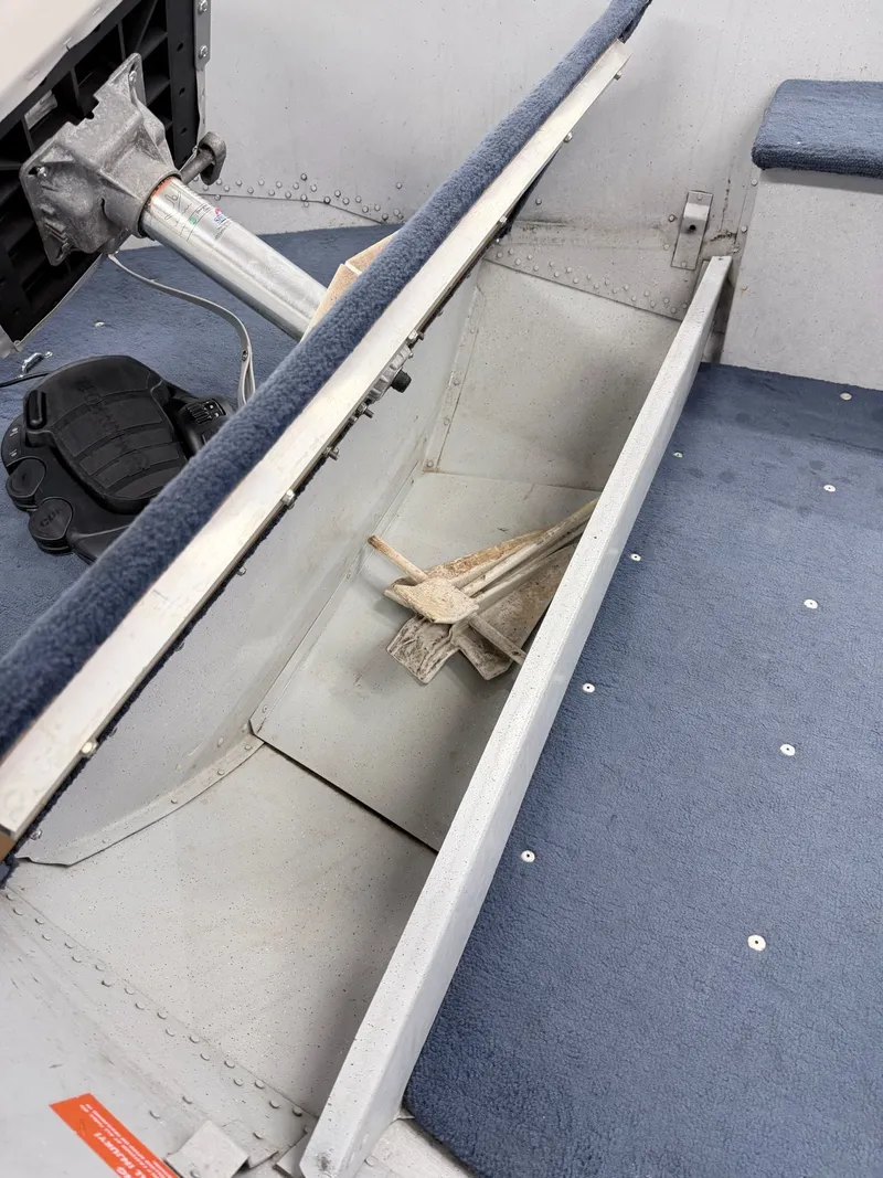 Solid hull, transom, floors!!Powered 25 hp Suzuki (installed 2023), w/ electric start & power lift, gas tank, Lowrance Hook 5, 12v Minnkota Terrova I-Pilot w/ foot pedal & hand lanyard, custom boat cover, 2 seats, trailer.