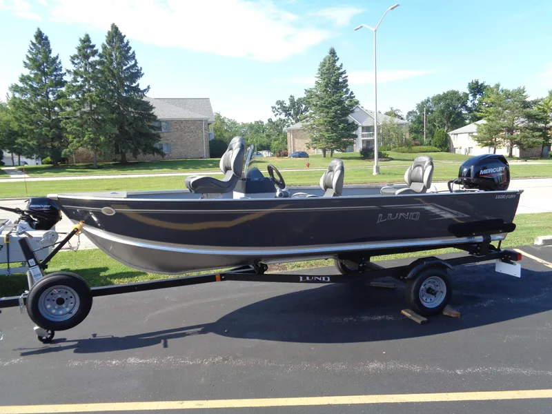 Water ready! This Lund 1600 Fury SS is ready to fish. Please see the options listed below. Aluminum Prop, upgraded 1500 LBS trailer with swing tongue, Load Guides, Transom saver, Three Pro Ride Seats, drivers seat slide, two fender hangers, two Sport Track brackets, one tool holder, Cell Phone charger base, Fuel Tank hider, Fire Ext, 6.6 Fuel Tank, Two Bank onboard Charger, Bow Trolling motor Hardness.