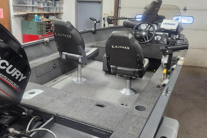 The 2018 Lund 1650 Rebel XS is the best value on the lot - a low-hour, freshwater-only boat from one of the most respected aluminum boat builders in the industry. Lund's IPS (Integrated Power Strake) hull design gives this boat a smoother, more stable ride than competing aluminum fishing boats of similar size. With just 212 total hours on the Mercury 60 ELPT 4-stroke, there's plenty of life left in this motor. The 1650 Rebel XS was a popular tournament and family fishing platform, offering three pedestal seats, a 4-step stainless boarding ladder, a Bimini top, and generous rod storage throughout. The Lowrance Hook 7 fish finder and Minnkota PowerDrive 70 make it ready to fish right off the trailer. Only minor cosmetic hull scuffs - structurally clean.