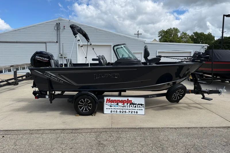 This is a 2026 Lund 1775 Impact XS Sport that is powered by a Mercury 115 4 Stroke. This boat is Gunmetal in color with Standard Graphics and Raised Black/Chrome Lund Letters with Full Vinyl Interior. This boat is equipped with the following options: Humminbird Level 2 Electronics Package (Minn Kota 80 Terrova MDI Bow Troller with Removable Mount, Humminbird Helix 7 MDI G4N GPS/Fishfinder at the Console, and Minn Kota Precision PCL-330 Charger), Lux Package (Air Ride Pedestal Upgrade, Crossover Style Steering Wheel, Ski Pole), Kicker Fuel Line, Top Hider, Lund Sport Top with Walkthru Curtain, and Lund Travel Cover. The trailer is a Lund Shoreland'r Single Axle Bunk Trailer with Bow Steps, Aluminum Mag Rims, Matching Spare Tire, Load Guides, and Retractable Tie Downs.