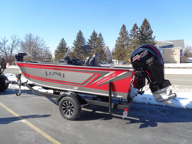 Introducing the 2025 Lund 1875 Impact XS SS, a remarkable aluminum fish boat designed for both performance and durability. With an overall length of 18.9 feet, this vessel features a robust Deep Vee hull shape, ensuring stability and a smooth ride even in challenging waters. Powered by a powerful 150 hp Mercury 150 PRO XS outboard engine, it promises an exhilarating experience on the water, making it perfect for fishing adventures or leisurely outings. The boat's aluminum construction not only enhances its longevity but also contributes to its lightweight design, facilitating easy maneuverability. The stainless steel 3-blade propeller ensures efficient propulsion, further elevating your boating experience. This new model is equipped with essential features that prioritize functionality and reliability, making it an excellent choice for avid anglers and boating enthusiasts alike. Experience the thrill of the water with the Lund 1875 Impact XS SS, where quality meets performance.