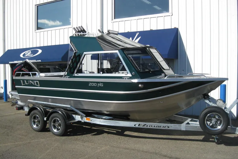 2026 Lund 200 HG Heavy Gauge. An absolute beast of a boat, built tough for tough conditions. This brand new model from Lund Heavy Gauge is powered by a Mercury 200 XL Pro XS 4 stroke, paired with a 9.9 EXLPT EFI Pro Kicker, setup with tie bar and separate controls. New Forest Green hullsides, 1/2 hardtop offers full enclosure with side and aft curtains, 8 hardtop rodholders, and 6 side mount rodholders, 6" stern rails w/ downrigger mounting pads (2), Smooth Move seat pedestals, dual automatic bilge pumps, hardtop LED flood light, 20" LED light bar, LED docking lights, and so much more. Comes paired with a tandem axle EZ Loader galvanized trailer w/ spare tire and load guides. A must see! Lund Ultimate Savings Rebate Included, offer expires 2/28/2026!