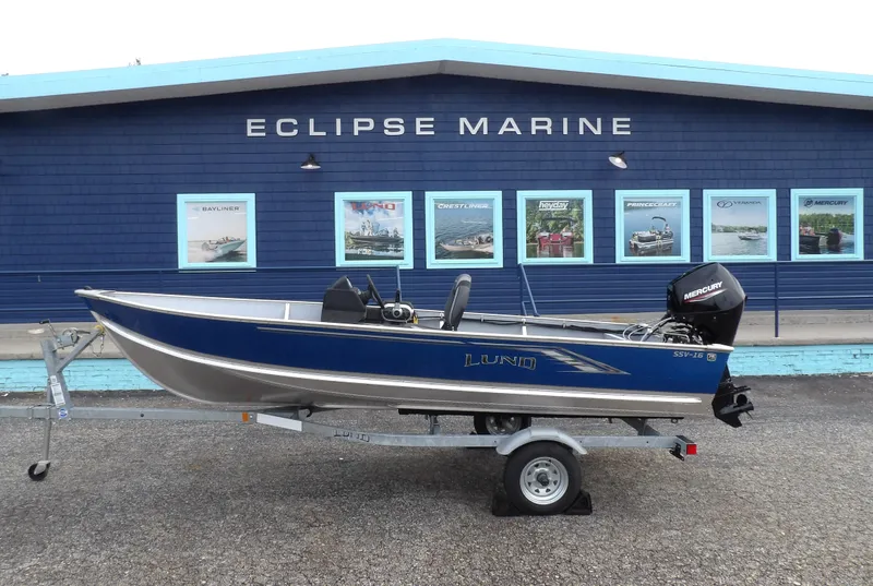 This new holdover 2023 Lund SSV 16 Side Console model, was just recently paired with a brand new 2025 Mercury 30 HP Four Stroke outboard (Ordered originally for stock with out power) for reliable, turn key performance. This well equipped SSV 16 comes with all the standard features of the SSV series plus all these added options: Side console package w/ steering, Mercury analog w/ gauges, Bow casting platform w/ gray seat & pedestal, Gray flat removable vinyl floor, navigation light kit all sitting on an upgraded Galvanized bunk trailer. This boat has been steeply discounted, comes with full factory warranty and is ready for a new home! For more details, the latest in pricing & incentives give us a call at Eclipse Marine Seneca (864) 670-2250 or stop in and see us at 305 US Hwy 123 bypass Seneca, SC.