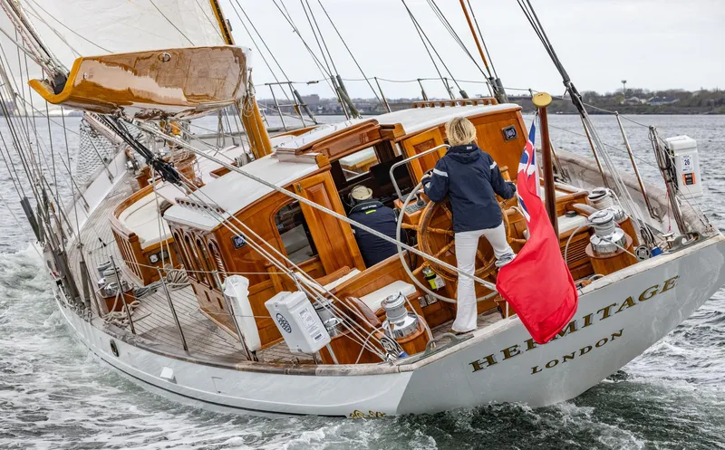 Introducing "Hermitage," a stunning sailing vessel that seamlessly blends timeless elegance, and the classic luxuries of living aboard.