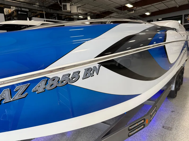 Mid-cabin open bow, Mercury 700SCi/NXT's with Whipple Stage III upgrade, 5-blade Maximus propellers, huge JL Audio stereo system, SeaDek boarding package with custom snap in carpet kit, Garmin GPS plotter, VHF radio, stand up/drop down bolsters, cuddy cabin area with sink and matching upholstery, IMCO full hydraulic steering.
