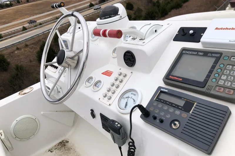 Twin Marine Power 350 EFI/260 HP* 762 Hours (at time of listing) * Kohler Generator 212 Hours* Extended Swim Platform* Bimin I Top* Full Enclosure* Cover* Dual Batteries* Battery Charger* Halon* Hot Water Heater* Transom Shower* Carpeting* Air Conditioning* Dinette* Compass* Depth Finder* VHF* Trailer Not Available
