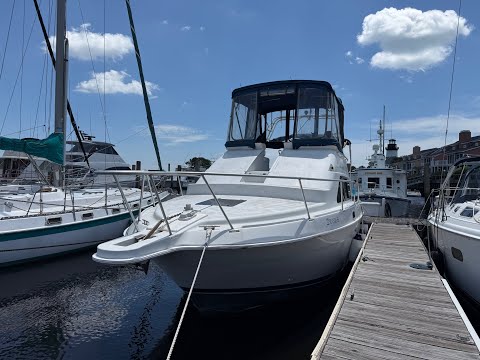 here we a very unique yet very functional flybridge, and if you want something different that you will not likely find anywhere well you have struck gold! this boat had a short production run from 1990 to 1992 due to the economic turndown in those years and the luxury tax that was in place then. she was well thought out by the designers at mainship. she gives you a HUGE interior, a very roomy flybridge with integrated steps to it(no ladders), and a good size aft cockpit. her bridge has a large u shaped seating area and also has fwd walkthrough entrance to the bow. new windlass anchor too. there is a bimini top and a bridge ckpt cover that is fairly new. her aft cockpit has easy access through her large entrance doorway. large swim platform as well. there is a large sliding door to enter the cavernous interior. large salon and dinette area, full size kitchen/galley, roomy enclosed head and stall shower, electric fresh water head system new water heater, air and heat, full size fridge with freezer, queen berth. new carpet throughout the cabin as well.