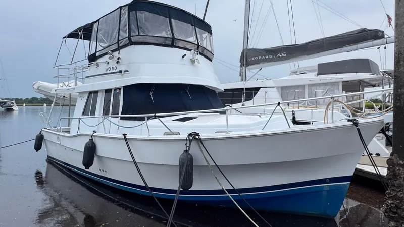 This model?renamed the Mainship 390 in later years has a reputation as a performance trawler thanks to her semi-displacement hull, offering better cruise speeds than traditional full-displacement models. Spacious living areas, two staterooms, and walk-around decks make NoMo ideal for extended stays aboard.