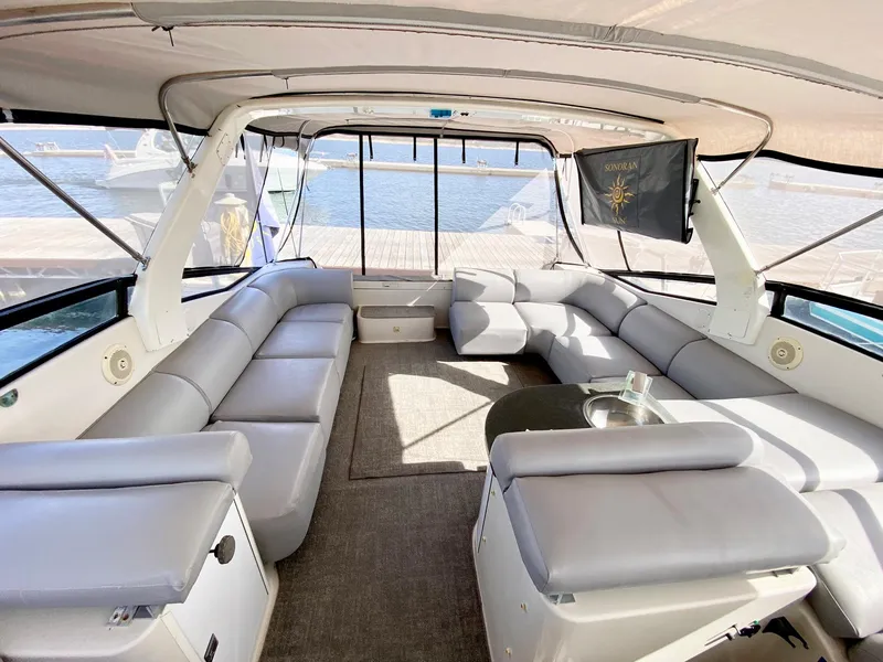 Economical Operation: Equipped with a reliable single diesel engine, the 39 Mediterranean Express is fuel-efficient compared to faster planing boats.