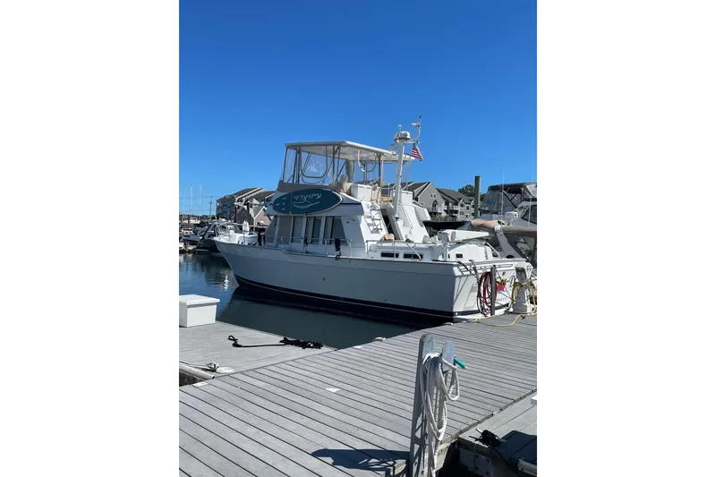 Introducing the 1999 Mainship 430 Trawler, a splendid vessel that embodies the essence of cruising, comfort and reliability. With an overall length of 43 feet, this used trawler is crafted from durable fiberglass, ensuring a robust and resilient structure for your adventures on the water.