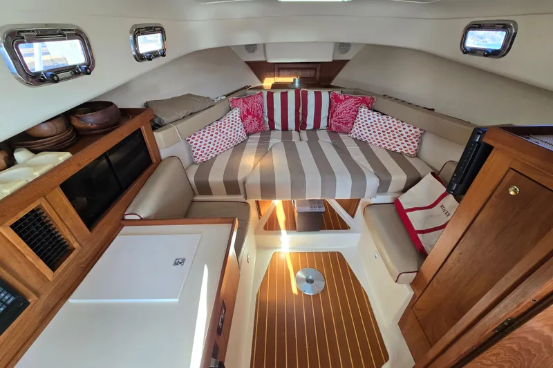 As of today (11/7/2025) her hull and deck were fully compounded and waxed, her interior detailed and engine oils changed. I would highly encourage your personal inspection as she is ready for your immediate fall adventures!
