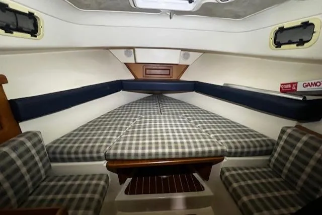 - Convertible dinette, port and starboard, seats facing each other.