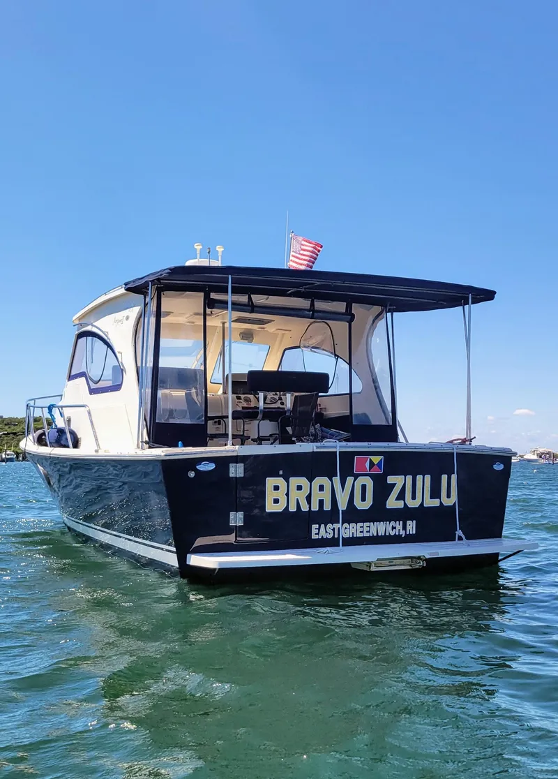 The Main Ship Pilot Sedan 34 is a great day trip or load her up and head to Maine for a month. The galley has all the comforts for a great trip including a good-sized refrigerator. The cabin sleeps two and the dinette converts to a bed for two