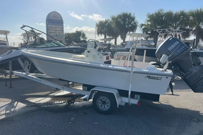 This boat is a 1974 model that was professionally redone in 2010. The deck and cap were pulled apart and new stringers and transom were added. The entire deck cap is new fiberglass and includes a casting deck and storage hatch. The hull itself was repainted off-white. New to the boat in 2010 was a Yamaha F115 (currently has 196 hours) and replacement of all old parts including trim tabs, all bow eyes and thru hulls, rub rail, helm, steering cylinder, navigation lights, courtesy lights, bilge pump, back up bilge pump and all wiring. If you are looking for a classic 17 Mako, this one is ready to go.