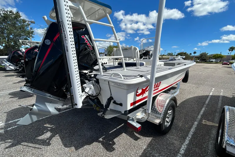A GPS-enabled Minn Kota® Riptide trolling motor with I-Pilot® control keeps you "anchored" in position in current, wind, and waves while the 175HP Mercury® ProXS meshes with trim tabs to deliver sizzling performance and a smooth ride across chop. At the helm, a 7" Sharktooth™ digital gauge is standard and complements the Wet Sounds® four-speaker stereo. Rounding out this special edition is a custom patriotic color scheme and decking with a saltwater-ready trailer tailor-made for the hull that sits on it. Become the envy of the flats and terror of the fish in the 18 Pro Skiff Patriot Edition.