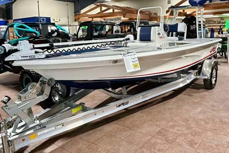 A GPS-enabled Minn Kota® Riptide trolling motor with I-Pilot® control keeps you "anchored" in position in current, wind, and waves while the 175HP Mercury® ProXS meshes with trim tabs to deliver sizzling performance and a smooth ride across chop. At the helm, a 7" Sharktooth™ digital gauge is standard and complements the Wet Sounds® four-speaker stereo. Rounding out this special edition is a custom patriotic color scheme and decking with a saltwater-ready trailer tailor-made for the hull that sits on it. Become the envy of the flats and terror of the fish in the 18 Pro Skiff Patriot Edition.