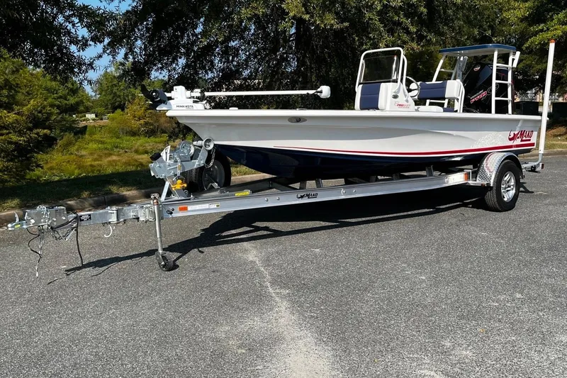 A GPS-enabled Minn Kota® Riptide trolling motor with I-Pilot® control keeps you "anchored" in position in current, wind, and waves while the 175HP Mercury® ProXS meshes with trim tabs to deliver sizzling performance and a smooth ride across chop. At the helm, a 7" Sharktooth™ digital gauge is standard and complements the Wet Sounds® four-speaker stereo. Rounding out this special edition is a custom patriotic color scheme and decking with a saltwater-ready trailer tailor-made for the hull that sits on it. Become the envy of the flats and terror of the fish in the 18 Pro Skiff Patriot Edition.