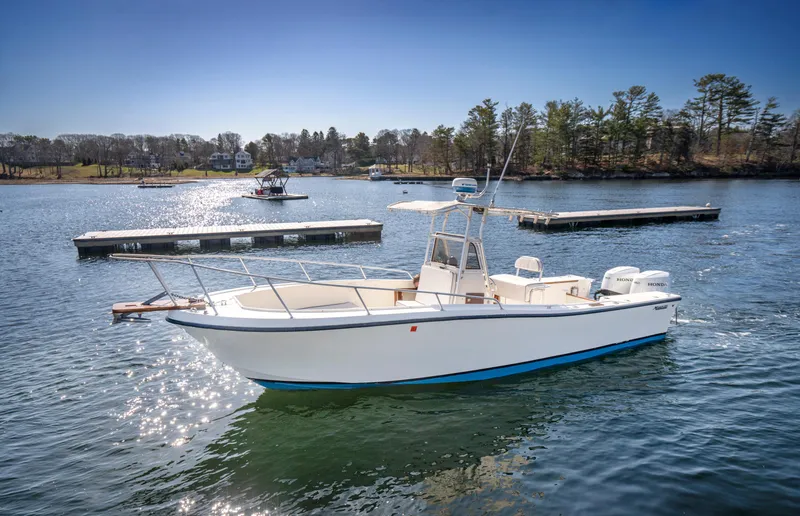 The 261 Mako was just repowered with new twin Honda 150iST motors, power assist steering, new custom dashboard, new wash down pump, new glove box, fresh bottom paint, buffed & waxed, some newer electronics, and 8 years of warranty on new Honda motors. We are selling this boat for $74,900.