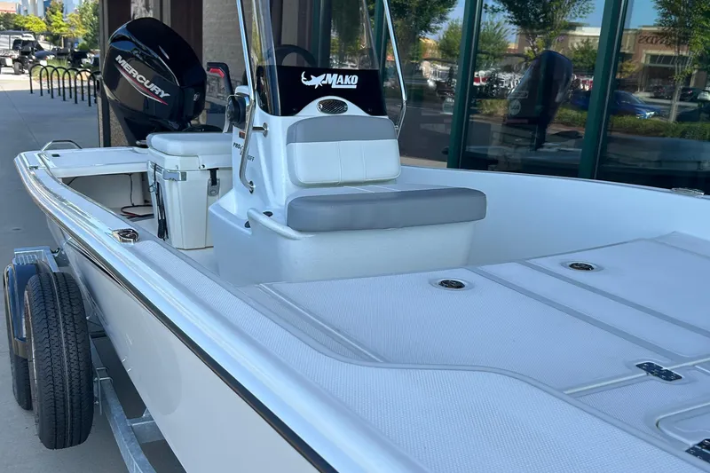 Stout construction, solid feel, and all-out fishability define the MAKO Pro Skiff 15 CC. The center console design offers maximum fishing space, and the purposefully designed hull was crafted for a smooth, dry ride, stability, and a shallow draft. Inside the Pro Skiff 15 CC is a helm seat with a 65-quart Orion® cooler underneath, a baitwell under the front seat, and rod holders and storage for a full day's worth of gear.
