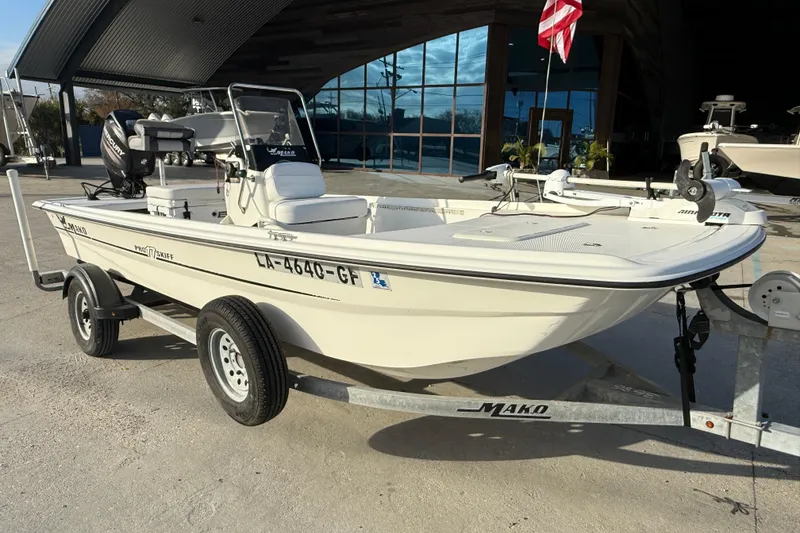 The 2016 Mako Pro Skiff 17 CC is perfect for anglers and outdoor enthusiasts looking for a versatile, durable, and easy-to-handle fishing boat. Its shallow draft and stable design make it ideal for navigating flats, bays, and shallow waters, while the center console layout provides excellent visibility and ample space for gear and tackle. Whether you're a seasoned fisherman or a weekend adventurer, this boat offers the performance and reliability needed for a successful day on the water.