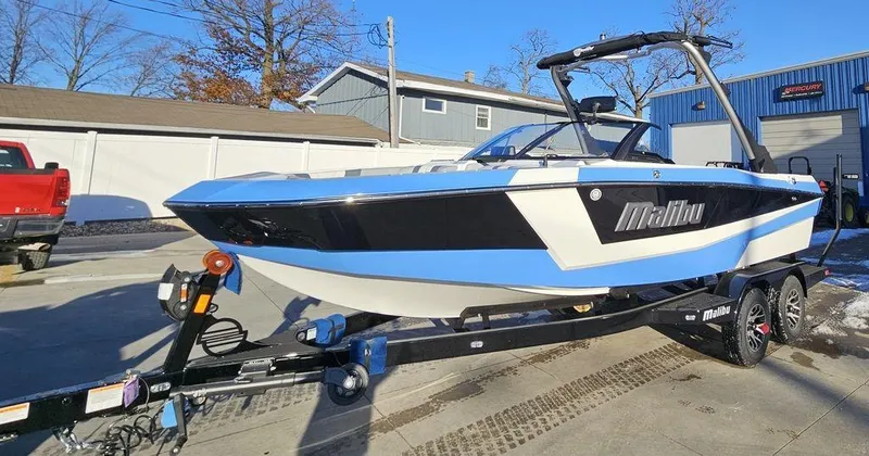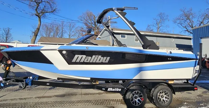 Malibu new price leader with M5DI 360hp engine, Surf gate, 3 ballast tanks, Stereo system, bimini top and custom trailer