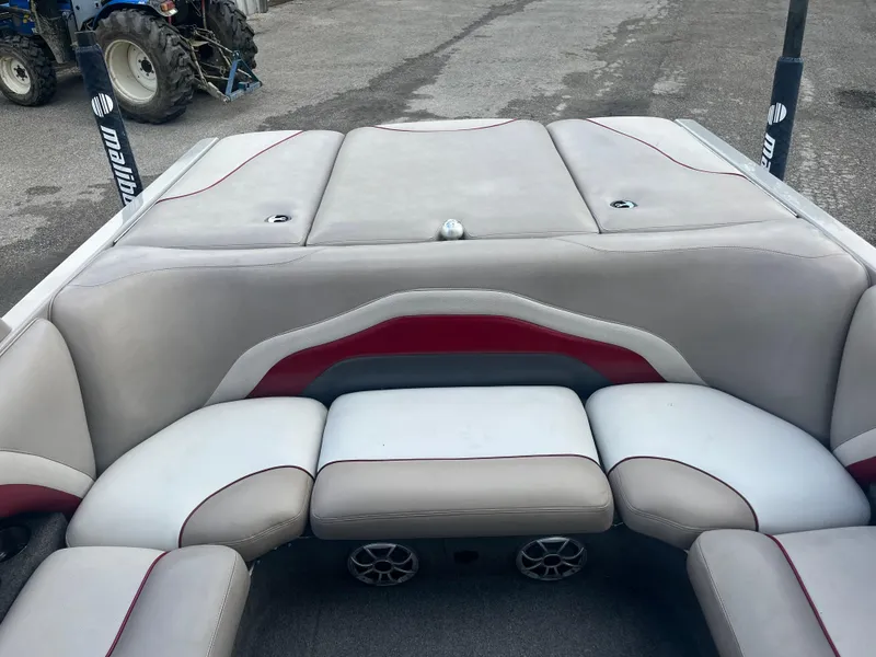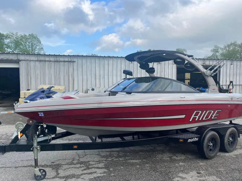 Awesome late-model Malibu V-Ride just arrived on our lot! This boat features the Malibu Monsoon series engine and has just over 690 hours. We have known this boat for a long time and are familiar with its service and use for the last many years. The boat has been well-maintained and also had a serious stereo upgrade professionally completed a few years ago. If you're looking to get into a sport boat that won't break the bank, this is it! It has a manual surf wedge, as well as spacious storage for all of your boards, vests, and ropes. Also packaged with the pictured trailer! Call today!