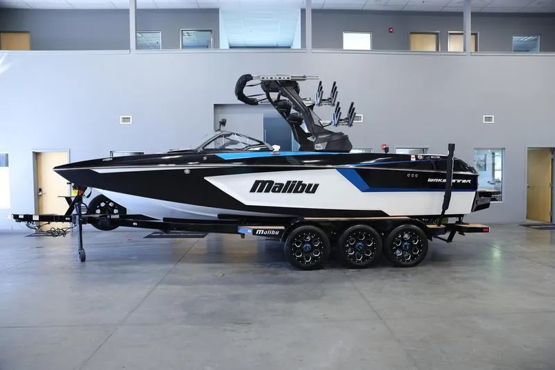 Known for its world-class wakes and waves, sharp head-turning profile, and maximized comfort, the Malibu Wakesetter 24 MXZ is the most premium & spacious 24-foot boat in the industry. With plenty of storage that runs from bow to stern, customizable lounge seating, and the most spacious bow area in the Malibu line-up, the 24 MXZ was built to impress your 17-person crew. And, not only does the 24 MXZ boast powerful performance behind the wheel, but thanks to the industry's most awarded surf system, the 24 MXZ generates perfectly symmetrical wakes & waves for every rider with endless customization options.