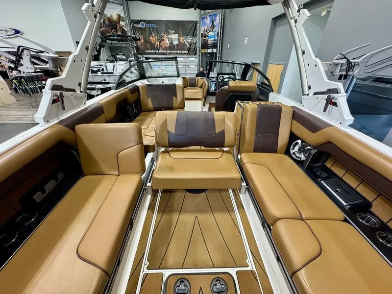 Customize your interior with 2 Wakeview pop up seats and the Multi-View Bench complete with a built-in table for the perfect day on the water.