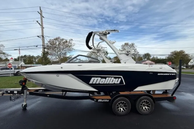 2021 Malibu Wakesetter LSV 22 with only 65 hours. Well maintained, trailer included. Zephyr Blue Metallic color with tan leather interior. Call listing agent.