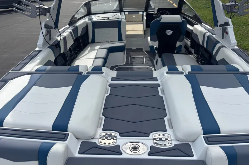 Just re-released for 2025! The 22MXZ offers the perfect mix of size, drivability, and even more performance than a traditional bow. Not to mention - it also is legal on some of our local length restricted waters. This particular unit is powered by the 6.2L Malibu M6 - giving this boat plenty of power for surfing with max capacity and max ballast.
