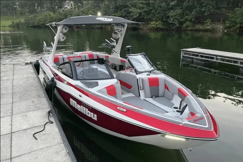 The boat is fully loaded with factory options, including Malibu's advanced wake shaping systems, premium Wet Sounds audio, upgraded interior features, and a wide-view backup camera. With Surf Gate, Power Wedge III, and the Hi-Flo ballast system with Plug-N-Play bags, riders can dial in the perfect wave for surfing or wakeboarding with ease.