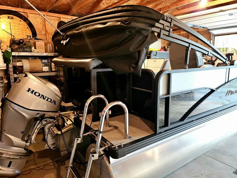 This 2022 Manitou Aurora LE 18' pontoon boat is in excellent condition with only 29 engine hours. Perfectly suited for lakes, rivers, or relaxed cruising, it combines reliability, comfort, and modern electronics for an effortless boating experience. The boat features a dependable Honda 60 HP 4-stroke engine, a Garmin Echomap Plus 73sv for navigation and fish finding, a bimini top for shade, and a full protective cover for storage.