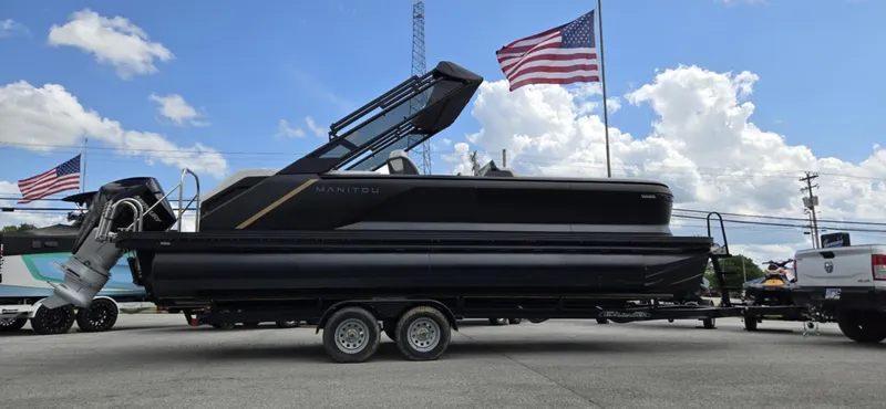 Turn heads and own the water in this fully loaded 2025 Manitou Explorer Navigator 24, powered by a 300HP Mercury Verado for thrilling performance and ultra-smooth handling. Designed for those who demand both luxury and power, this tri-toon features matte black powder-coated tubes for a sleek, aggressive look that stands out at every dock.