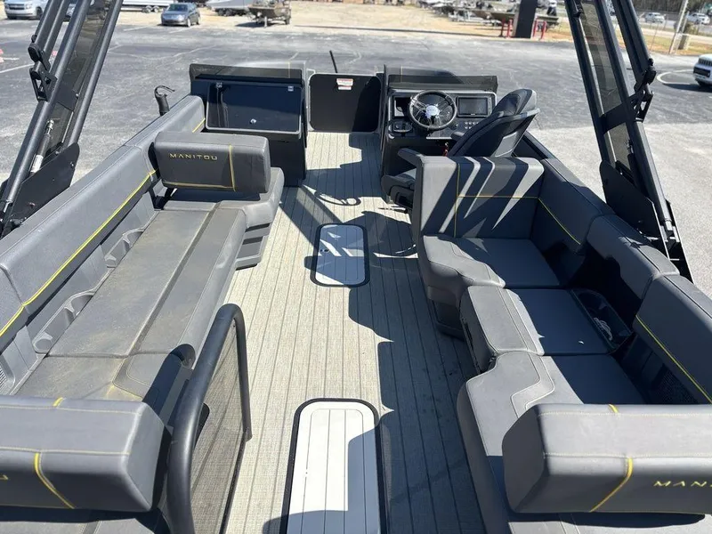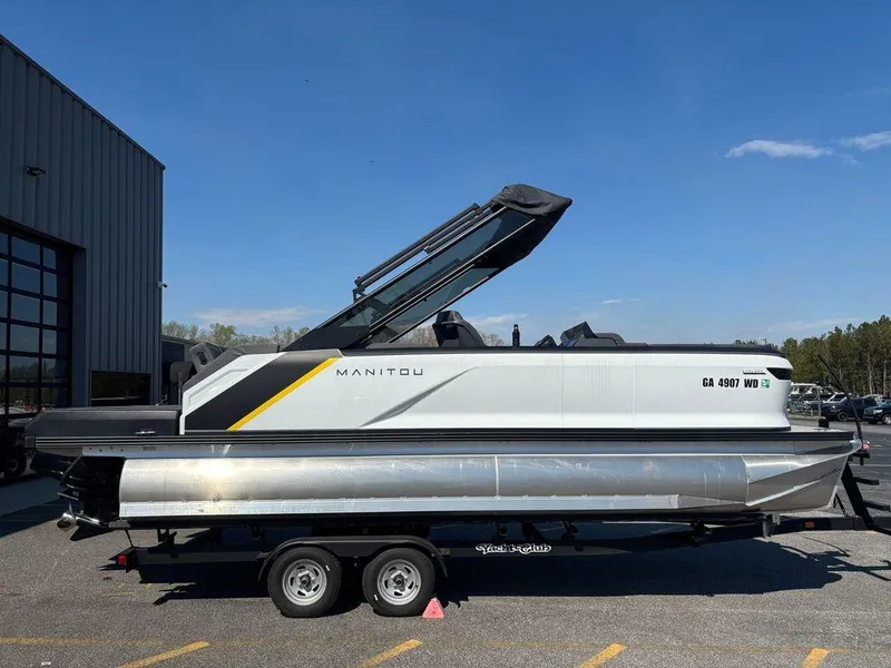 The Manitou Explore was designed to elevate your experience with game-changing innovations like a sleek Sport Bimini, integrated digital display, comfortable high-back helm chairs and versatile Trifold Bench