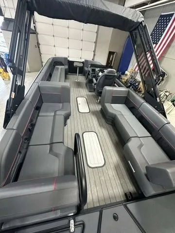 The Manitou Explore was designed to elevate your experience with game-changing innovations like a sleek sport Bimini, integrated digital display, comfortable high-back helm chairs and versatile trifold bench.
