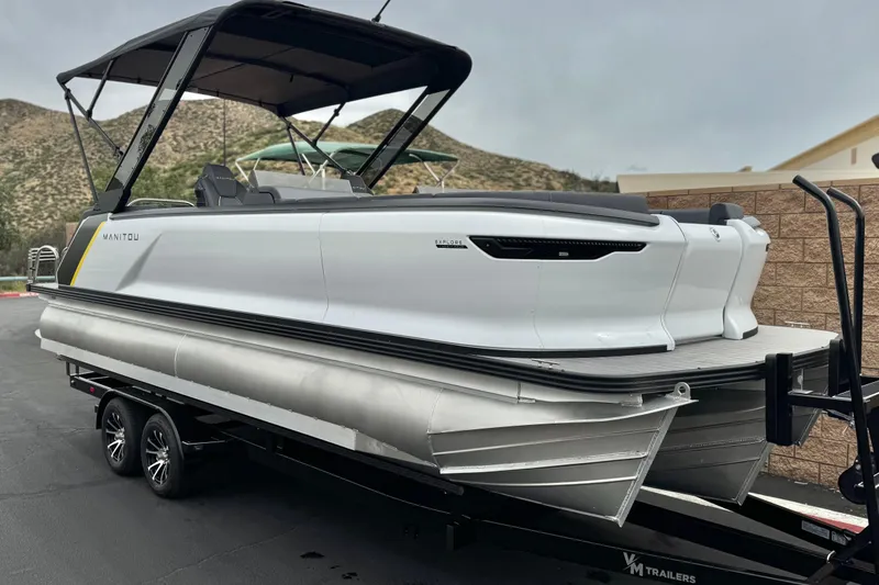 New 2025 Manitou Explore 24 Navigator Tritoon Boat w/ Suzuki 300HP 4-Stroke Outboard Engine