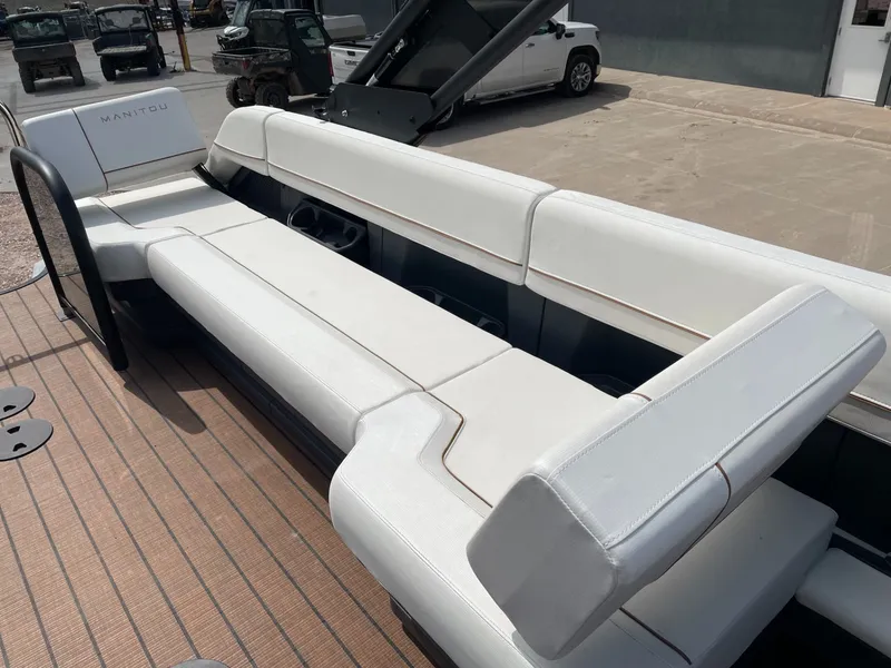 Explore 26 Switchback, The Explore 26 Switchback with Trifold bench features a portside switchback lounger with navigator helm. With max capacity, there's room for up to 14 people. This model can be rigged with your choice of a single or dual traditional outboard engine.